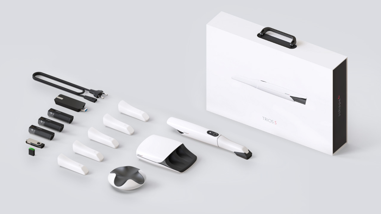 Before watching the clips, let’s take a look at what you get with a TRIOS 5 Wireless intraoral scanner. The TRIOS 5 box includes: