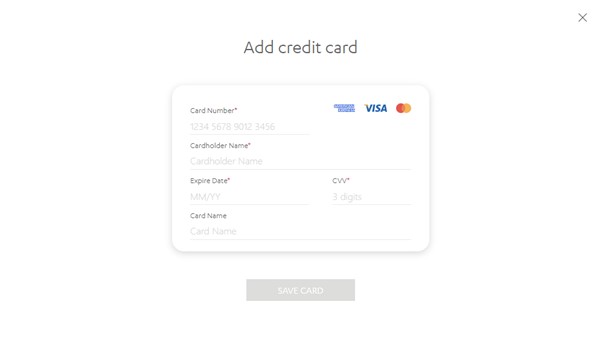 2.1.1. If you would like to pay with a credit card, you have the option to add several of them. It is possible to set the card as primary: choose the option while filling in the card details or use the alternative option 'Set card as primary' by clicking on the three red dots in the top right corner of the card.