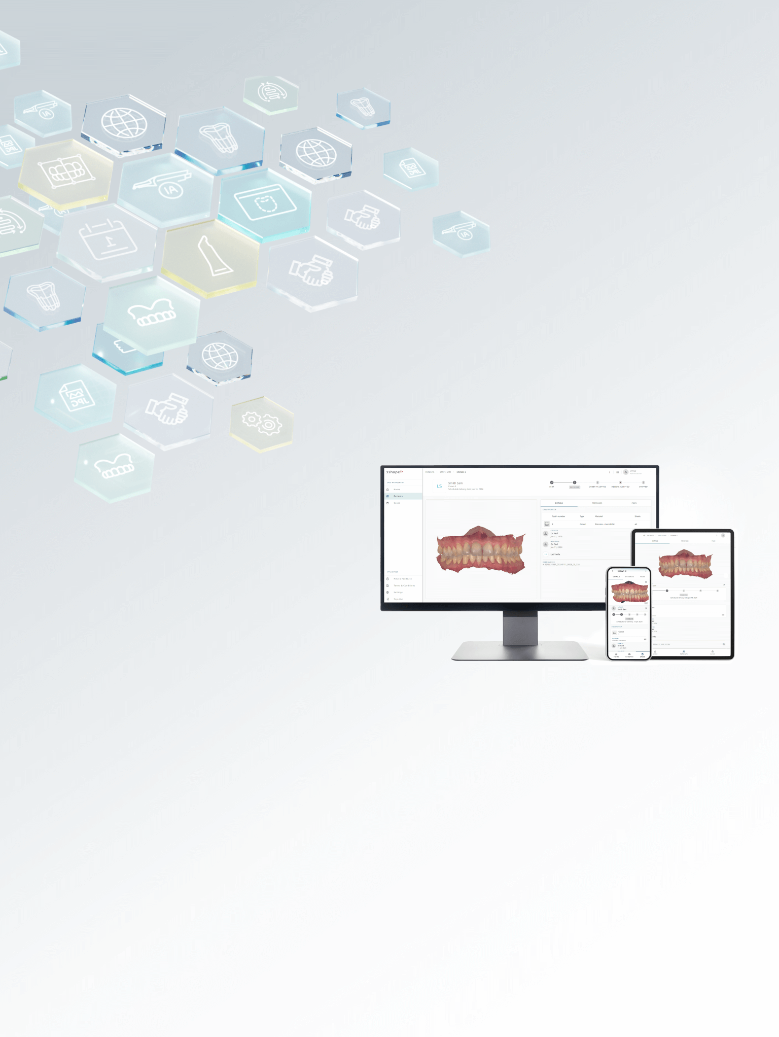 3Shape Unite Cloud is a completely new cloud-based and patient centric software accessible on any device – mobile, tablet, PC and Mac. Everything you do in 3Shape Unite instantly becomes available in 3Shape Unite Cloud, and vice-versa.
